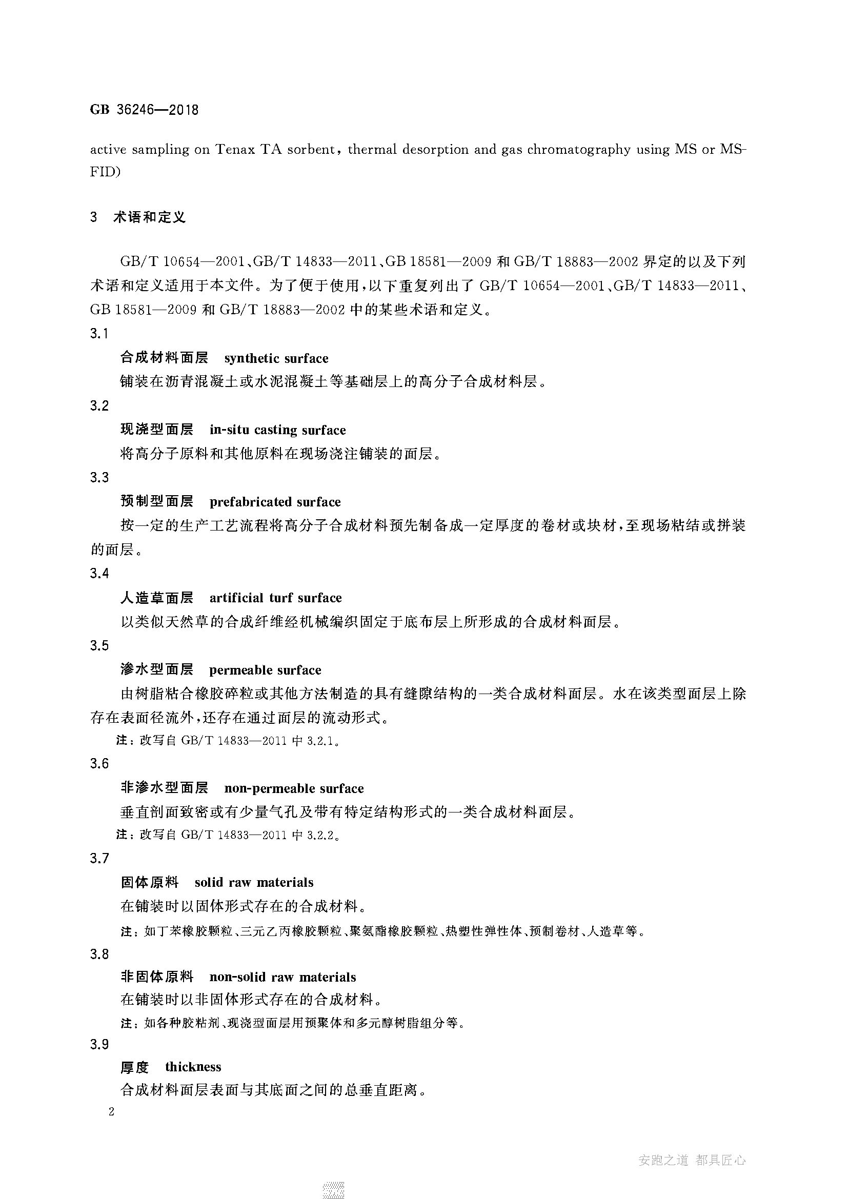 GB 36246-2018 中小學合成材料面層運動場地國家標準