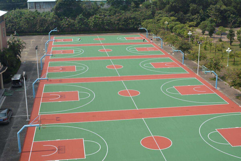 能力和耐老化力是國際上公認的**全天候室內外運動場地坪材料。塑膠籃球場又稱全天候運動籃球場,基礎層是一個長方形的堅實平面,由聚氨酯預聚體