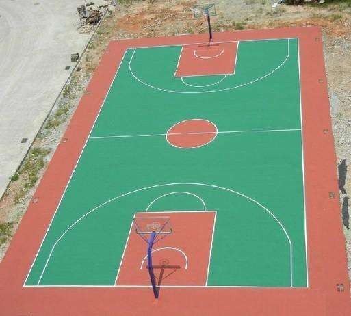 塑膠籃球場又稱全天候運動籃球場,基礎層是一個長方形的堅實平面,由聚氨酯預聚體