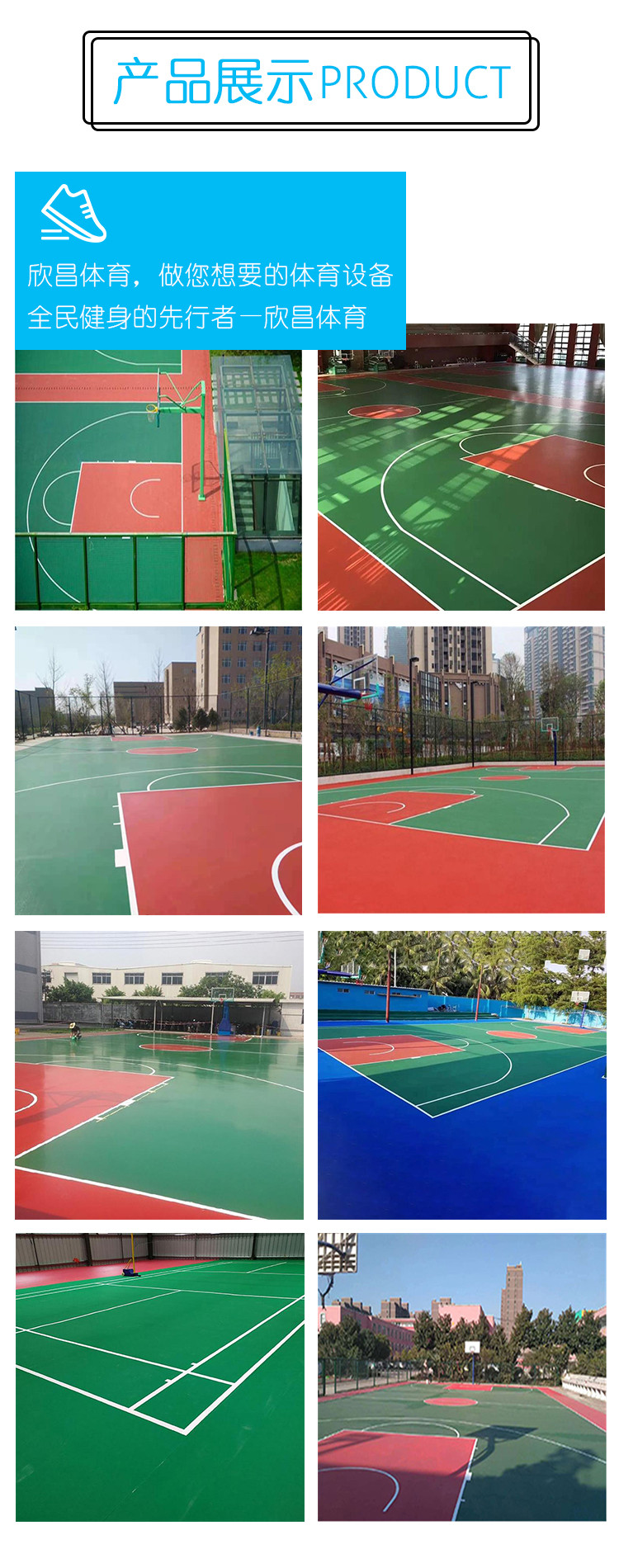 基礎要求:透水地坪/瀝青/混凝土不得翻砂起層;抗侯性:抗紫外線/化/抗凍;使用年限:6-8年;設計厚度:5-8mm;使用范圍:小/中/大學等各類網/藍球場。產品特征:上硬下彈的性能,專為運動而設計,場地帶來的運動質感;可以有效地運動緩沖,運動員腳踝、關節、韌帶因地面反作造成的傷害;硬中帶彈,彈而不軟的運動結構,全天候使用,使用壽命長;簡便,成本低,阻燃、絕緣性能好,防火、性能高,、無害,符合要求。