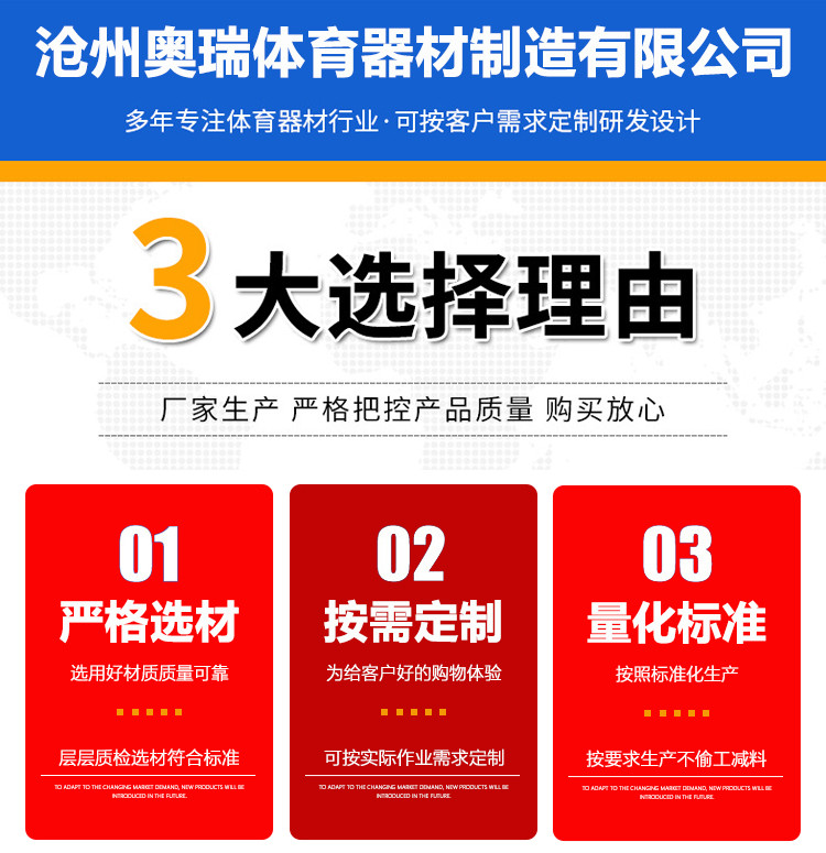 ,滄州奧瑞體育器材制造有限公司擁有一批素質高的管理人才,配備了成套的先進設備,建立了科學的生產