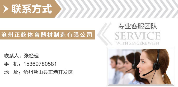 滄州正乾體育器材制造有限公司位于全國聞名的石油化工基地和北方重要陸海交通樞紐滄州,在公司發展壯大的時間內,我們始終為客戶提