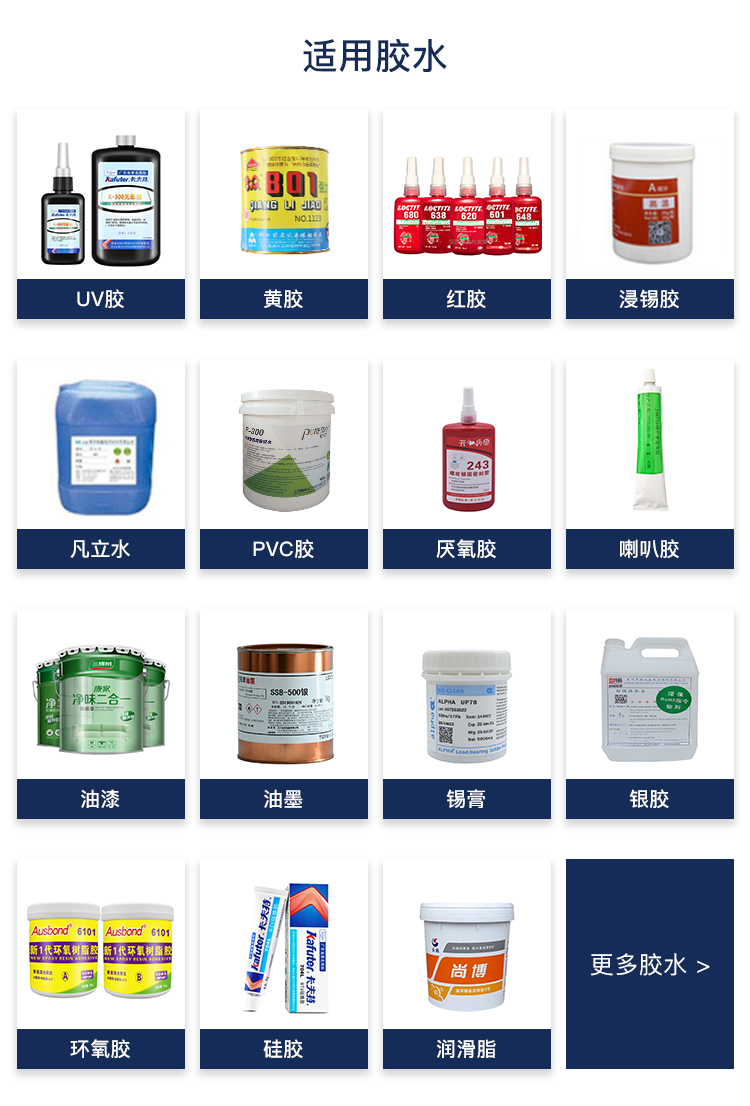 自動點膠機應用領域:基本涉及到有粘度的流體都可用點膠機。如(UV膠、AB膠、瞬間膠、白膠、環氧樹脂、螺紋鎖固劑、平面密封膠等)