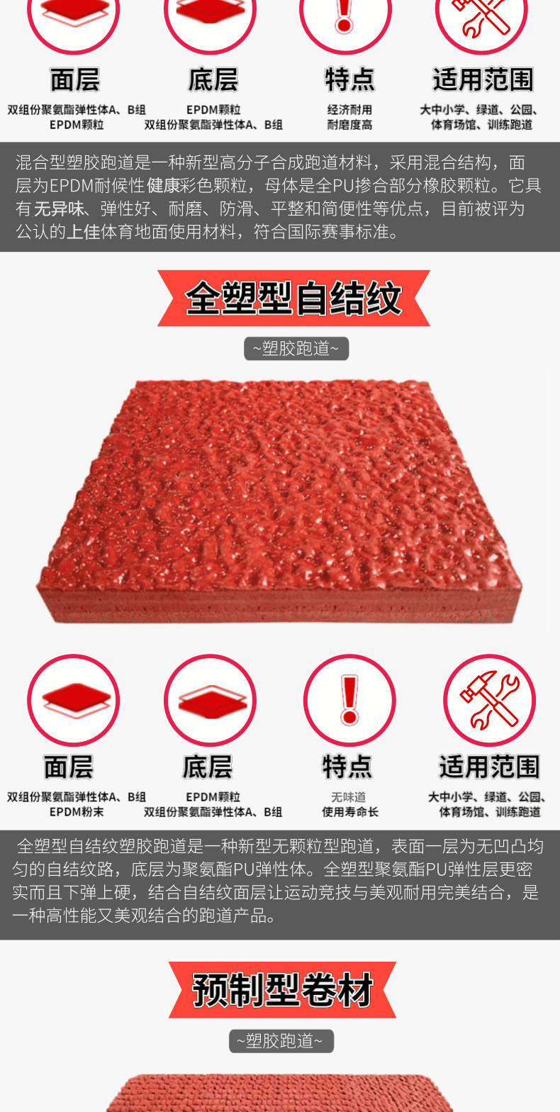 美創(chuàng)新國標(biāo)跑道 塑膠跑道 塑膠顆粒 抗磨性彈性好