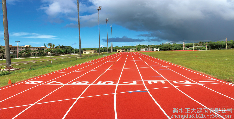 塑膠跑道是一種符合人體工學原理并滿足運動物理特性需要,具備上硬下彈結構特征并能直接在水泥或瀝青基礎上施工的健康型專業彈性材料系統。采用高分子互穿網絡技術研制的可逆性結晶結構的緩沖層設計,具有卓越的拉伸與撕裂強度,保證不開裂,彈性高,能確保運動質感。同時結合雙組份丙烯酸改性聚氨酯體系,采用純樹脂水性面漆層,較低力強,不僅保色性好,還具有抗污性、耐老化、耐磨及抗刮傷等性能。