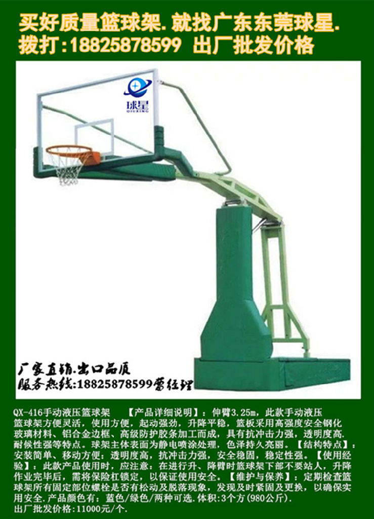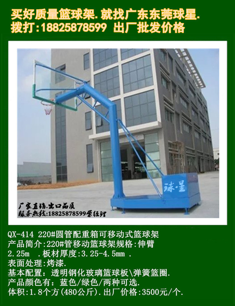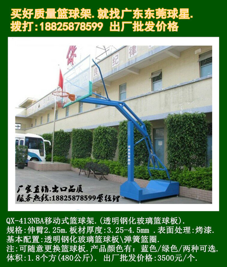 籃球架系列產品顏色為:綠色、藍色、可選.可根據用戶需求改變顏色,產品在沒有特別說明的前提下默認為根據庫存隨機從綠、藍兩種顏色中隨機抽取發貨。