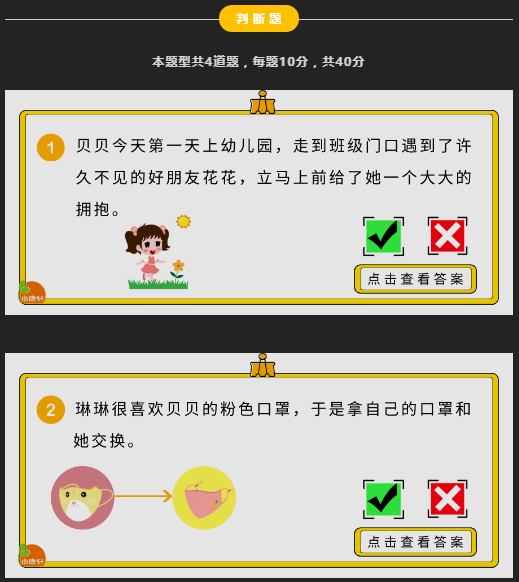 那么,你們的幼兒園開學了嗎?你們班的孩子安全系數又是多少?這份幼兒園致所有小朋友們疫情防護測試題,幼師們快發到家長群,請家長監督完成,看看你們班的孩子適不適合開學呢?