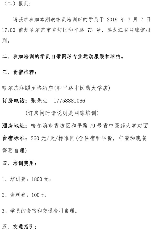 中國網球協會2019年初級教練員培訓班(哈爾濱站)補充通知
