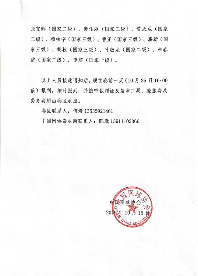 關于選派2019年中國業余網球公開賽深圳皇冠賽技術官員的通知