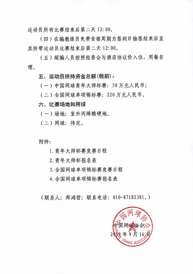 1.2019年中國網球青年大師杯(中國網球未來之星大獎賽)日程安排