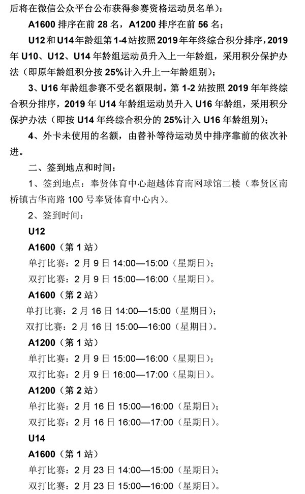 2020年全國青少年網球積分排名系列賽(奉賢站)補充通知