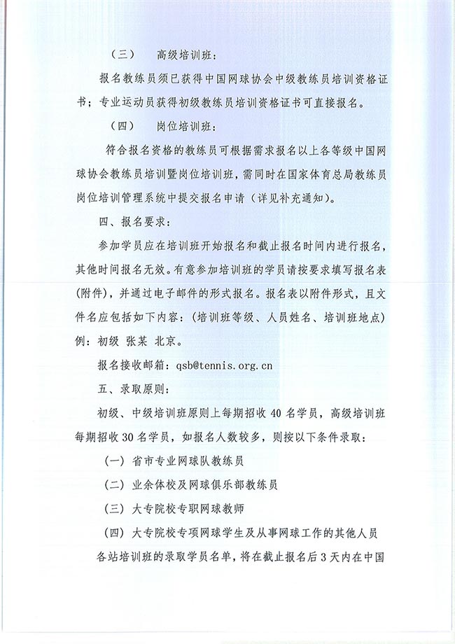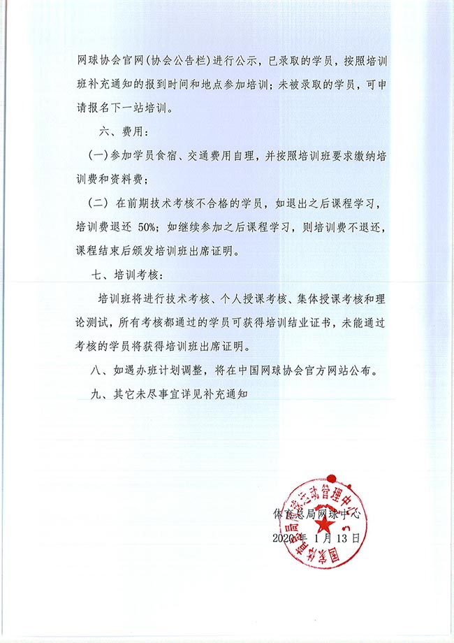 關于舉辦2020年中國網球協會等級教練員培訓班的通知