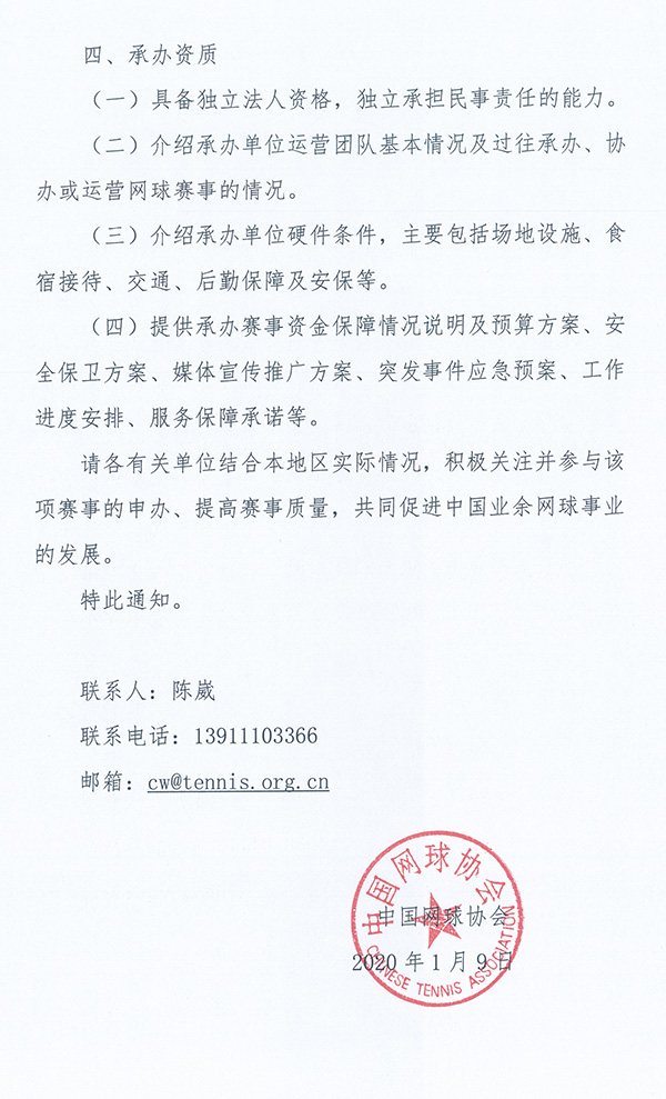 關于征集2020年中國業余網球公開賽分站賽承辦單位的通知