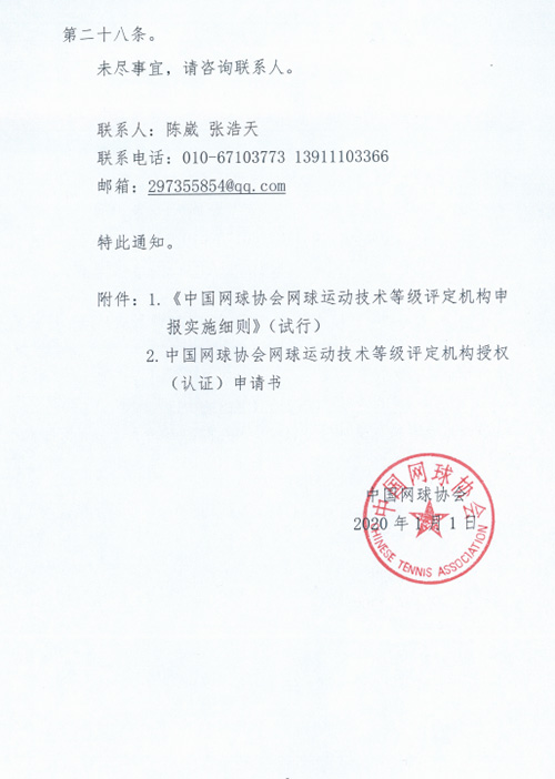 1.中國網球協會網球運動技術等級評定機構申報實施細則(試行)